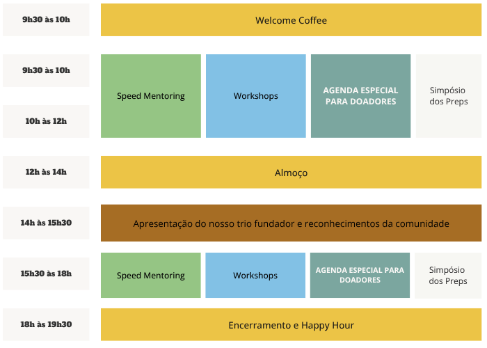 Seções de mentorias, trocas sobre temas específicos, desafios, apresentação de pesquisas e mais. Inscrições na agenda em breve.